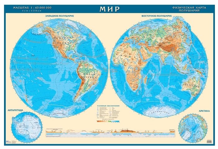 — Перед вами физическая карта полушарий. Слово “физическая” произошло от греческого слова “физис” — природа. Это карта природы мира.