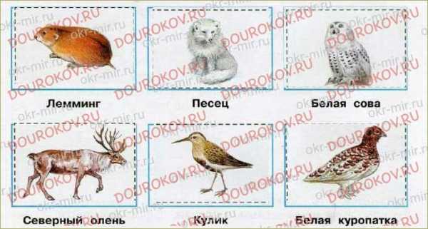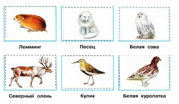 2. Знаешь ли ты живой мир тундры? Вырежи картинки из Приложения и правильно расположи их. Проверь себя по рисунку в учебнике.