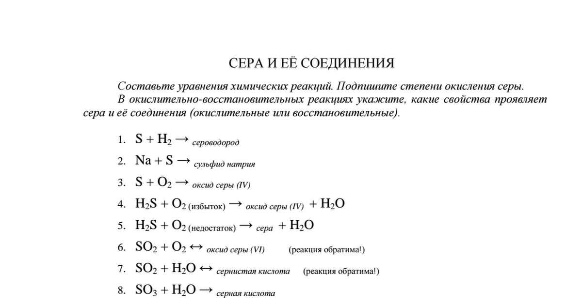 Уравнения химических реакций