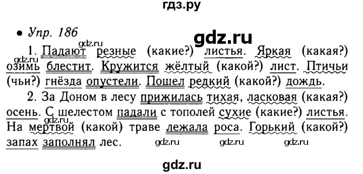 Подробный решебник (ГДЗ ) по Русскому языку за 3 (третий) класс — готовый ответ часть 2 упражнение — 186 .
